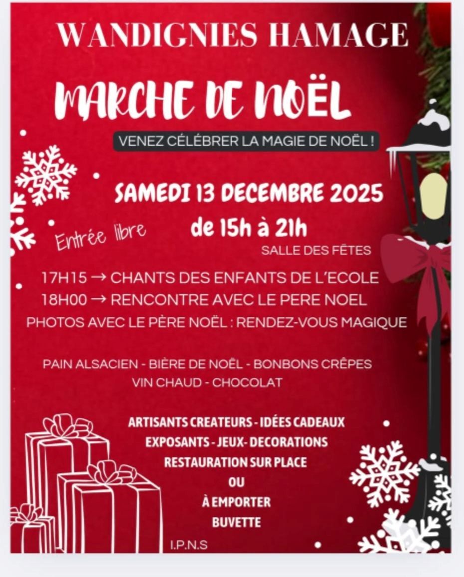 Entrez dans la magie de Noël au marché de Wandignies-Hamage, le samedi 13 décembre.