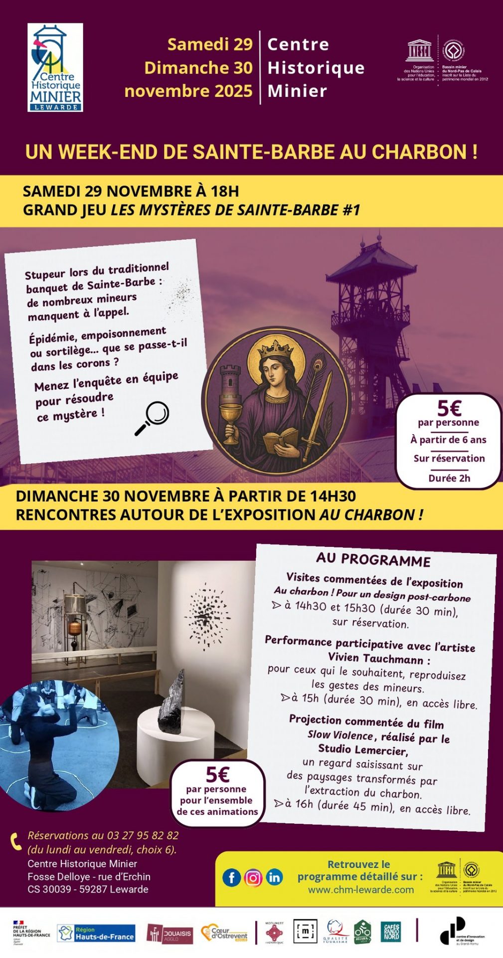 Comme chaque année, le Centre Historique Minier célèbre Sainte-Barbe, la patronne des mineurs, lors d’un week-end d’animations dédiées.